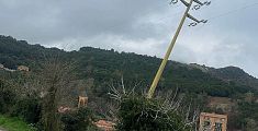 Lo smottamento a bordo strada ha coinvolto il palo che è scivolato insieme al terreno, inclinandosi. Sul posto i vigili del fuoco