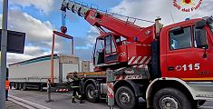 Il mezzo pesante si è adagiato su un fianco, bloccando le due corsie di sorpasso. Sul posto i Vigili del Fuoco per rimuovere anche i veicoli "caduti"