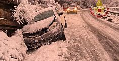 Nella notte fiocchi sono scesi sui rilievi anche fino a quota collinare. Operatori su strada per garantire la viabilità. Le immagini più suggestive