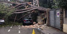 La pianta è crollata d'improvviso in carreggiata investendo vetture in sosta e un veicolo in transito, il cui conducente è stato soccorso dal 118