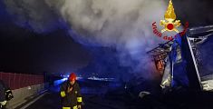 Il mezzo pesante si è incendiato in piena carreggiata ed è stato divorato dalle fiamme. Circolazione bloccata per consentire i soccorsi