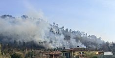 Squadre di vigili del fuoco e volontari al lavoro da ore per contrastare il fronte di fuoco alimentato dal vento. Inviato un elicottero