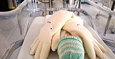 Il piccolo Flavio, accolto da mamma Martina e babbo Marco, è stato il primo bebè a venire al mondo nella vasca nativa dopo il trasferimento