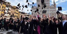Cerimonia al teatro Verdi per i neo dottori dell'università di Firenze. Grande emozione per il lancio del tocco in piazza Santa Croce