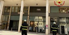 Vigili del fuoco al lavoro per spegnere un incendio nello stabile: il rogo ha reso inagibile i locali. Sul posto anche Carabinieri e Municipale