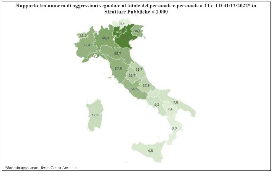 I dati del fenomeno sono esposti nell'ultima relazione dell'Osservatorio nazionale sulla sicurezza degli esercenti le professioni sanitarie e socio-sanitarie, diffusa dal ministero della salute attraverso il suo portale.