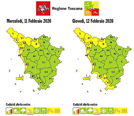 TOSCANA — La sala operativa della protezione civile regionale ha prorogato fino alle 15 di domani, giovedì 12 Febbraio, l'allerta gialla per rischio idrogeologico già in vigore sulla Toscana nord-occidentale, in particolare per Lunigiana, Garfagnana, Valle e foce del Serchio, Versilia, area lucchese, Valli del Bisenzio e dell’Ombrone pistoiese.