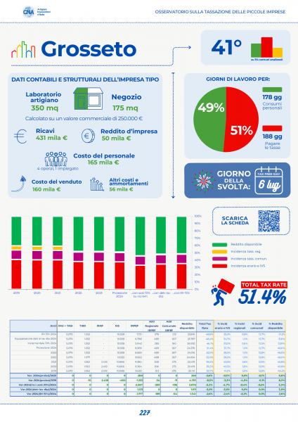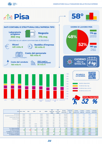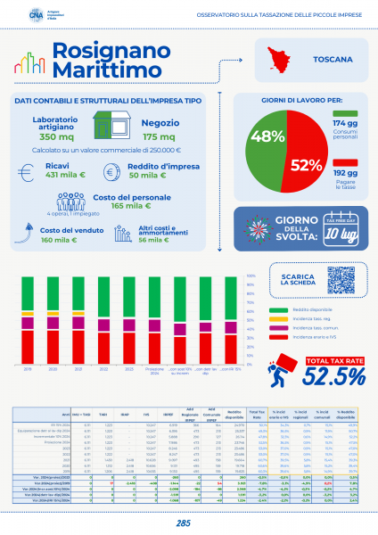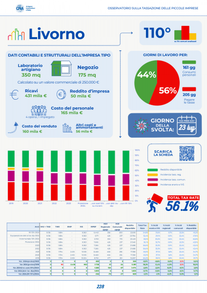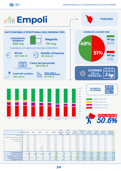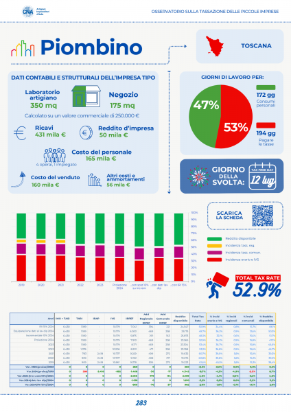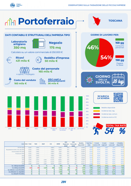 TOSCANA — "Comune che vai, fisco che trovi": si chiama così il rapporto presentato dall'Osservatorio Cna, giunto alla settima edizione, il quale mette a fuoco i divari territoriali sulla pressione fiscale a carico delle imprese personali nel 2024. La situazione migliora, certo, ma comunque gli artigiani si sono trovati a lavorare per il fisco anche fino al 23 Luglio, come accade a Livorno.