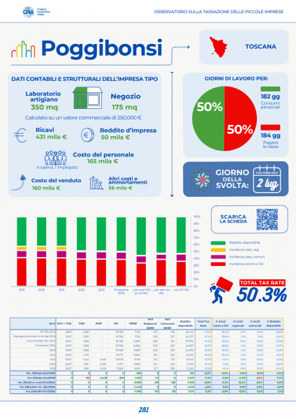 Nelle immagini in galleria ci sono le schede territoriali dettagliate di tutti i comuni toscani esaminati dall'Osservatorio Cna.