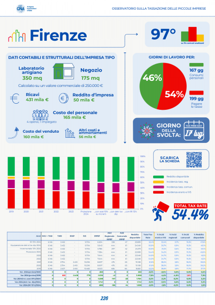 Al 97° posto ecco Firenze: il Ttr nel capoluogo toscano è del 54,4% e si termina di lavorare per il ‘fisco’ il 17 Luglio.