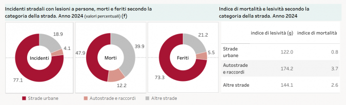 L'ultimo rapporto elaborato dall'Istat registra anche 19.465 feriti, in aumento rispetto al numero rilevato nel 2023. Le strade più pericolose