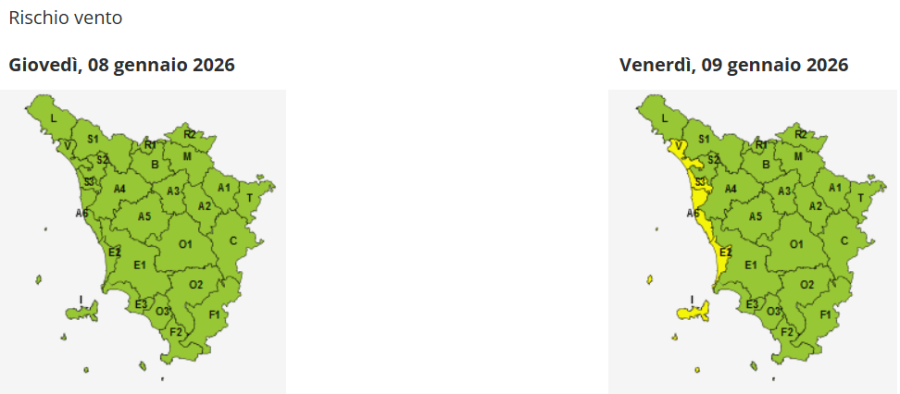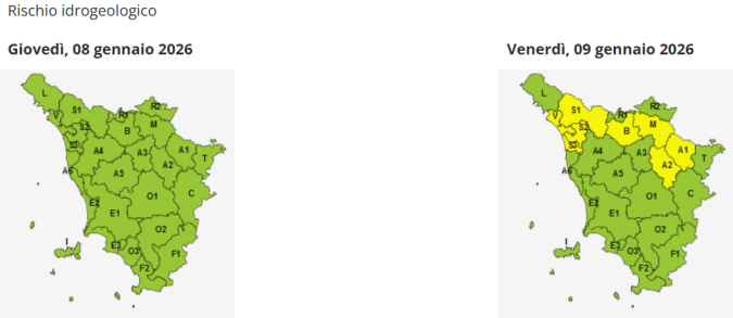 TOSCANA — Avvio del 2026 all'insegna delle allerte meteo in Toscana. Anche per la giornata di domani, venerdì 9 Gennaio, la Sala operativa della Protezione civile regionale ha infatti disposto attenzione massima per quanto riguarda mareggiate, vento e rischio idrogeologico.