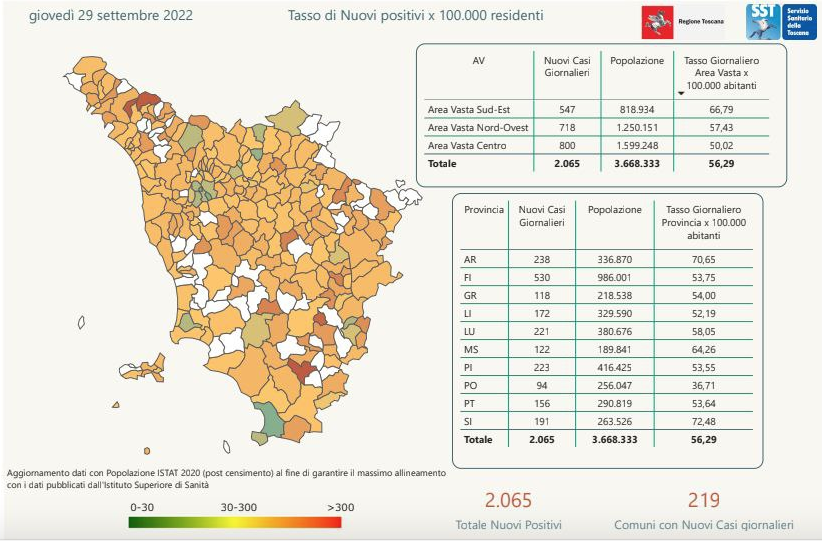 I nuovi positivi abitano in 219 dei 273 Comuni toscani.