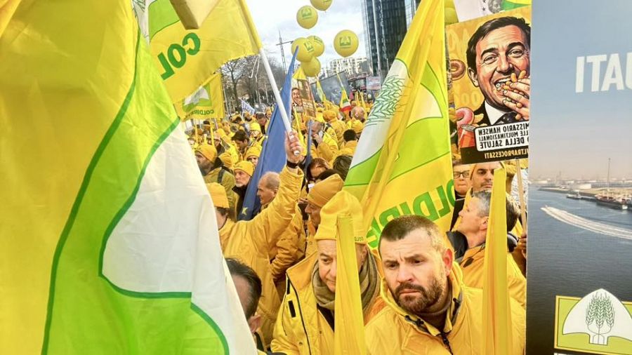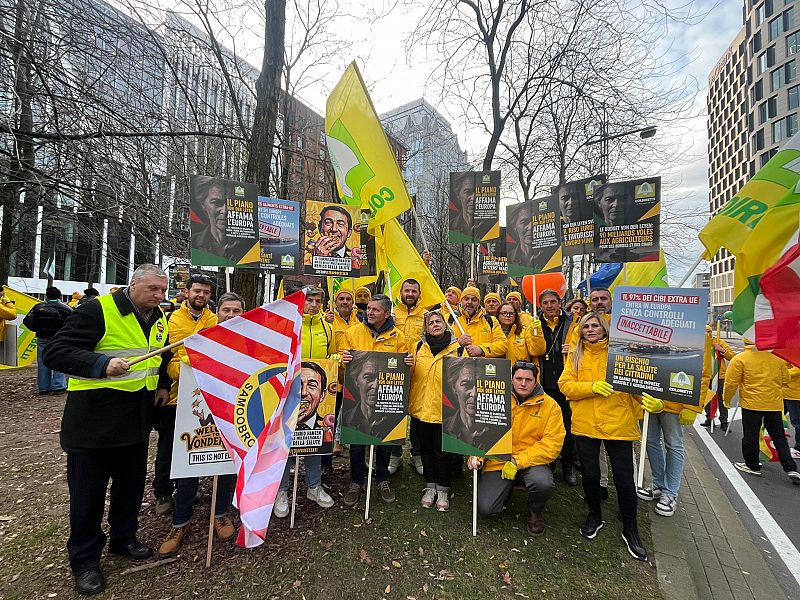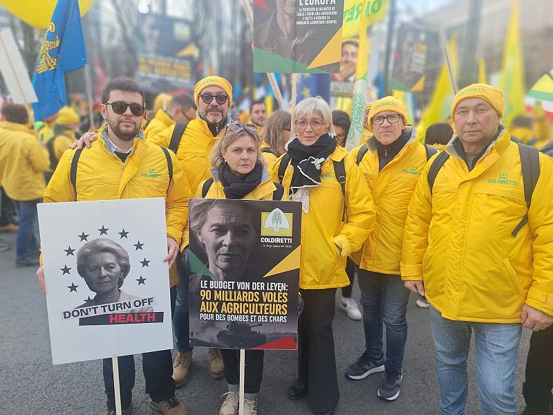 Sulle centinaia di cartelli esibiti dai manifestanti si leggono, tra gli altri, “Von der Leyen go home”, “Contro i contadini non si governa”, “Affamate chi vi sfama”, “Fuori gli autocrati dall’Europa”, “A Bruxelles si taglia, nei campi si chiude”.