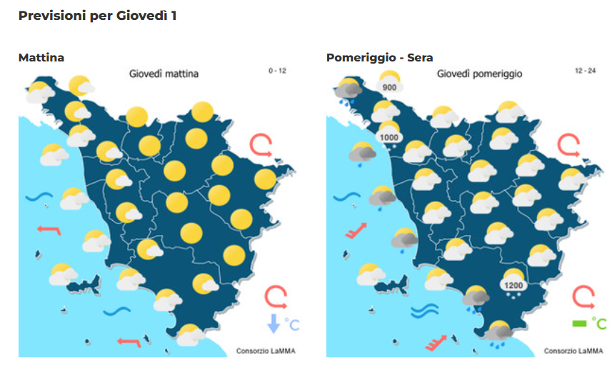 - Firenze, Prato, Pistoia, Arezzo: -3°