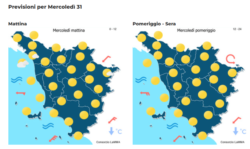 TOSCANA — Sereno con ghiaccio, e San Silvestro 2025 è servito. Ebbene sì, il meteo per il veglione che saluterà il 2025 sarà in tutta la Toscana caratterizzato da cielo terso e sgombro da nubi, ma temperature polari con possibilità di gelate anche estese e a Capodanno locali nevicate neppure troppo in quota.