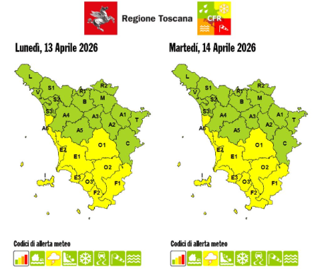 TOSCANA — La sala operativa della protezione civile regionale ha prorogato fino alle 9 di domani, martedì 14 Aprile, l'allerta gialla per temporali forti sulla Toscana centro-meridionale e l'Arcipelago.