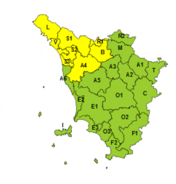 L'allerta sarà valida dalle 18 di oggi, sabato, e per tutta la giornata di domani e interesserà le zone settentrionali della Toscana.