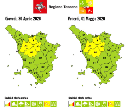 La sala operativa della protezione civile regionale ha emesso un nuovo codice giallo che interesserà la Toscana centrale